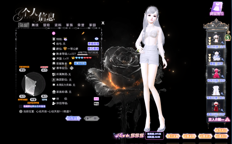 J741巨星钻13恶魔头女财富5200W消费11.8W秀丽风旅精灵凝目隔世黑白女神头白框豹纹上下黄韵短裙烈焰吻唇夙夜套67页动作名片2页黄昵称玫瑰特效对戒镜头撩人缠绵流光920部分老限时饰品